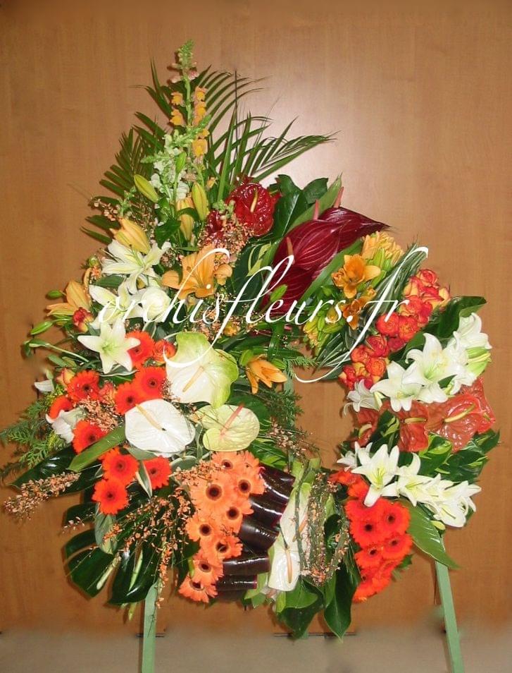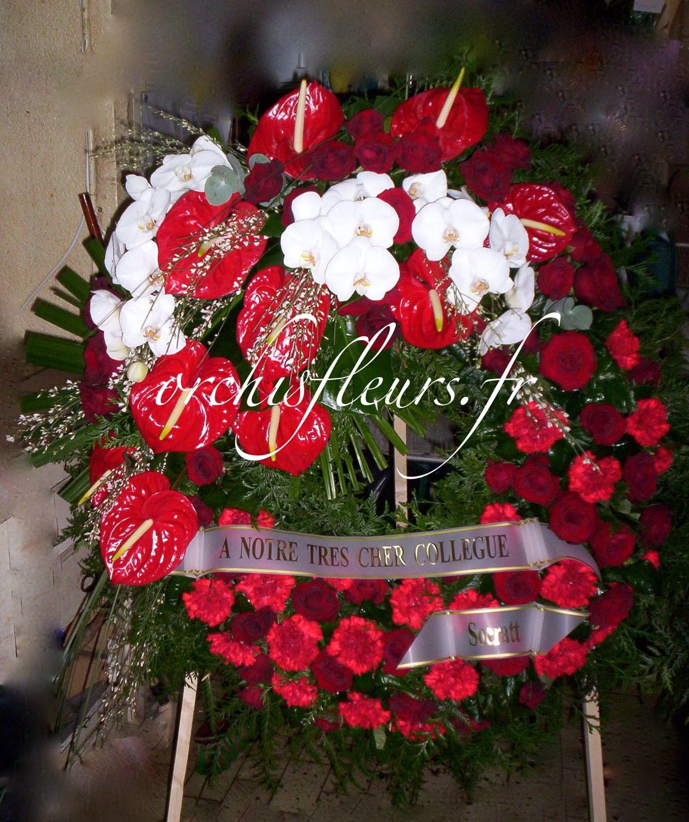 Ref : DCSP1364 Couronne sur pied avec fronton orchidées / anthuriums ...