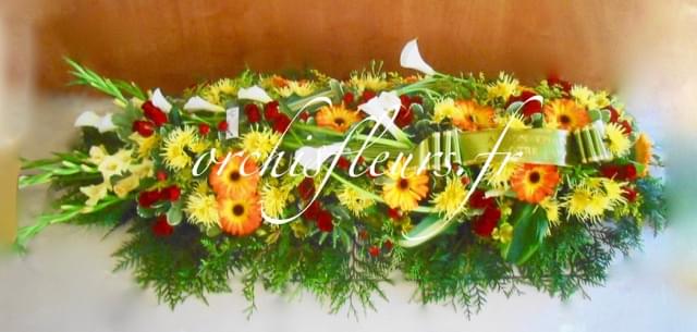Ref : DDSC1421 Dessus de cercueil Moderne de 250 à 600 € selon Taille,saison et fleur...
